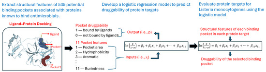 While ongoing research is being conducted to discover novel drugs or inhibitors targeting L. monocytogenes [13,20], more work is needed to evaluate potential targets for new drugs and assess their druggability. Prior studies have identified key genes and proteins involved in the stress response, virulence, and antibiotic resistance of L. monocytogenes [10] that could serve as targets for new methods of control. However, little work has been conducted to further evaluate the druggability of these targets. This work aims to fill this gap by developing a druggability-evaluation model based on the structural characteristics of binding pockets in proteins inhibited by known inhibitors and FDA-approved drugs (mainly antimicrobials). Subsequently, the developed model will be utilized to assess potential protein targets of L. monocytogenes highlighted in the existing literature.