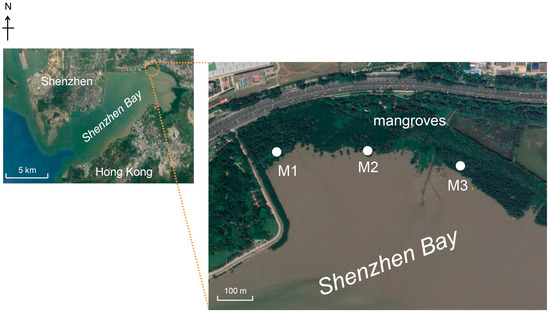 Sampling sites in mangrove sediments of Shenzhen Bay.