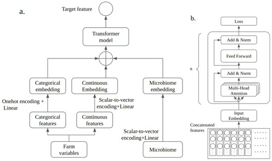 - Multi-head transformers with scalar-to-vector embedding—Farm Management Practice variables and Microbiome.