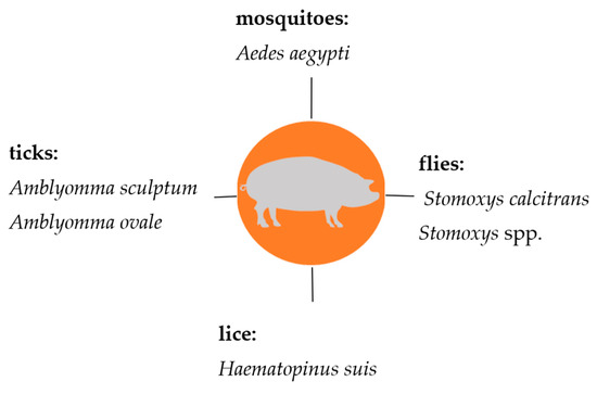 Suspected arthropod vectors for hemotrophic mycoplasmas in pigs described so far.