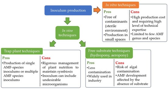- Sayeed Akhtar, M.; Nor, S.; Abdullah, A. Mass Production Techniques of Arbuscular Mycorrhizal Fungi: Major Advantages and Disadvantages: A Review. Biosci. Biotechnol. Res. Asia 2014, 11, 1199–1204. [Google Scholar] [CrossRef]