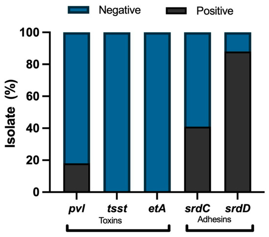 - Sabat, A.; Melles, D.C.; Martirosian, G.; Grundmann, H.; Van Belkum, A.; Hryniewicz, W. Distribution of the Serine-Aspartate Repeat Protein-Encoding sdr Genes among Nasal-Carriage and Invasive Staphylococcus aureus Strains. J. Clin. Microbiol. 2006, 44, 1135–1138. [Google Scholar] [CrossRef] [PubMed]