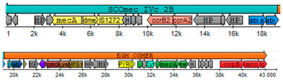 - Ito, T.; Kuwahara-Arai, K.; Katayama, Y.; Uehara, Y.; Han, X.; Kondo, Y.; Hiramatsu, K. Staphylococcal Cassette Chromosome mec (SCCmec) Analysis of MRSA. In Methicillin-Resistant Staphylococcus Aureus (MRSA) Protocols; Ji, Y., Ed.; Methods in Molecular Biology; Humana Press: Totowa, NJ, USA, 2014; pp. 131–148. ISBN 978-1-62703-664-1. [Google Scholar]