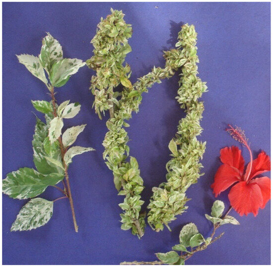 - Eckstein, B.; Silva, E.G.; Bedendo, I.P. Shoot proliferation and leaf malformation of Celosia argentea and Celosia spicata caused by a phytoplasma of the 16SrIII-J group. J. Phytopathol. 2012, 160, 206–208. [Google Scholar] [CrossRef]