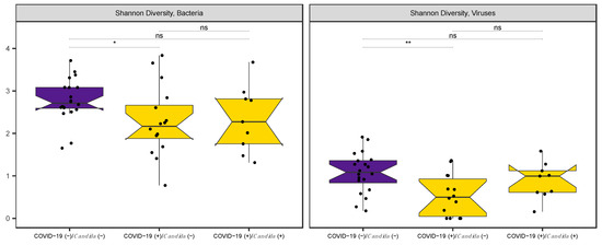 3.2. Significant Differences in Diversity of the Oral Microbiome of COVID-19 Patients Compared to Healthy Subjects