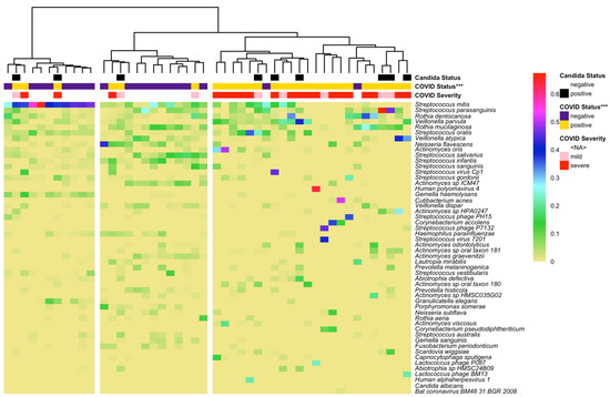 Alfaifi, A.A.; Holm, J.B.; Wang, T.W.; Lim, J.; Meiller, T.F.; Rock, P.; Sultan, A.S.; Jabra-Rizk, M.A. Oral Microbiota Alterations in Subjects with SARS-CoV-2 Displaying Prevalence of the Opportunistic Fungal Pathogen Candida albicans. Microorganisms 2024, 12, 1356. https://doi.org/10.3390/microorganisms12071356