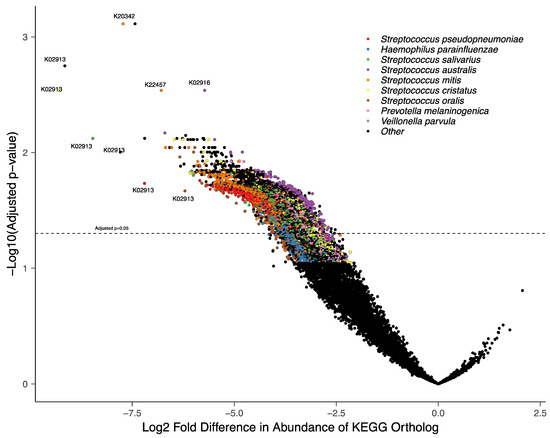 - Bao, K.; Bostanci, N.; Thurnheer, T.; Belibasakis, G.N. Proteomic shifts in multi-species oral biofilms caused by Anaeroglobus geminatus. Sci. Rep. 2017, 7, 4409. [Google Scholar] [CrossRef] [PubMed]