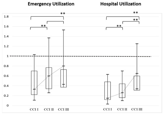 | CCI II | 1.24 | 0.56~1.94 | 0.00 ** |
