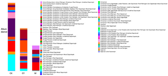 Analysis of the ecological functions of endophytic fungi in the tepals of W, CX, and CY. Classification based on 12 guild types of fungi.