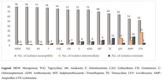 3.2. Antimicrobial Susceptibility Profiles of Isolates from the Sampled Markets