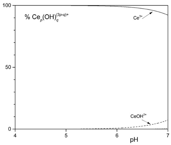 Distribution diagram of the hydrolytic species of the Ce3+ ion at 1.0 mM [Ce3+].