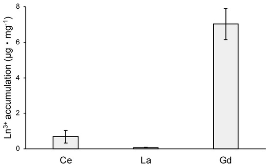 Ln3+ accumulation capability of B. stratosphericus, expressed as μg · mg−1 of dry weight.