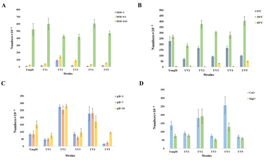 3.4. Isolation and Stability Tests of Mutant Cyanophages