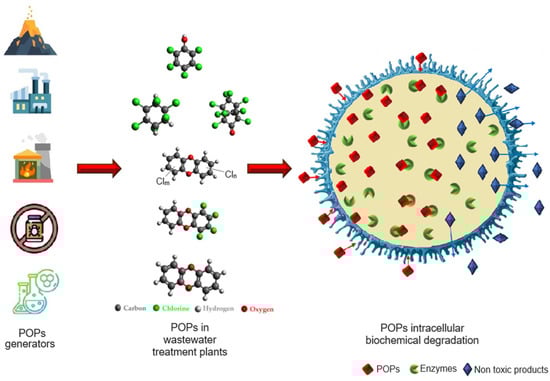 Biological techniques, which rely on the metabolic activity of microorganisms like bacteria and fungi, have emerged as promising alternatives for the removal of POPs from wastewater. These approaches harness the natural abilities of microorganisms to break down and transform persistent compounds by intracellular biochemical degradation into less harmful chemicals. Consequently, assessing the effectiveness of biological methods in eliminating POPs from the environment is a subject of considerable scientific interest [11].