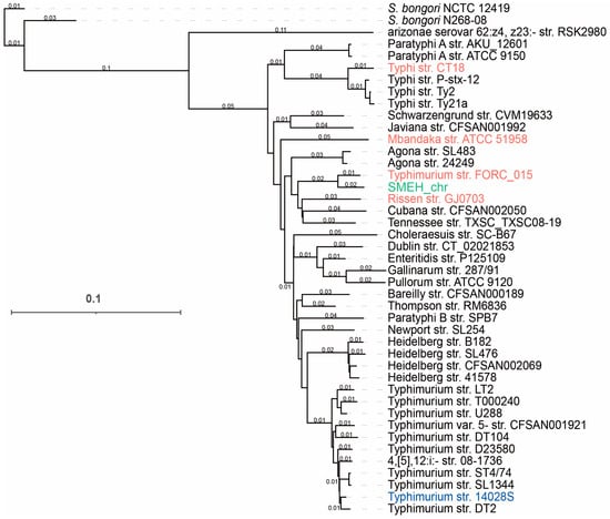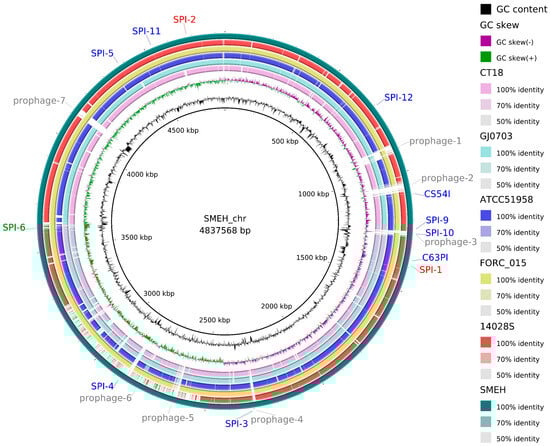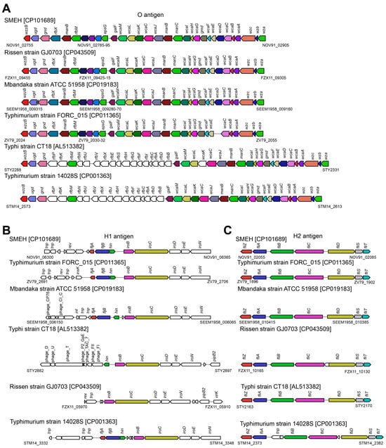 - Nair, S.; Alokam, S.; Kothapalli, S.; Porwollik, S.; Proctor, E.; Choy, C.; McClelland, M.; Liu, S.L.; Sanderson, K.E. Salmonella enterica serovar Typhi strains from which SPI7, a 134-kilobase island with genes for Vi exopolysaccharide and other functions, has been deleted. J. Bacteriol. 2004, 186, 3214–3223. [Google Scholar] [CrossRef][Green Version]