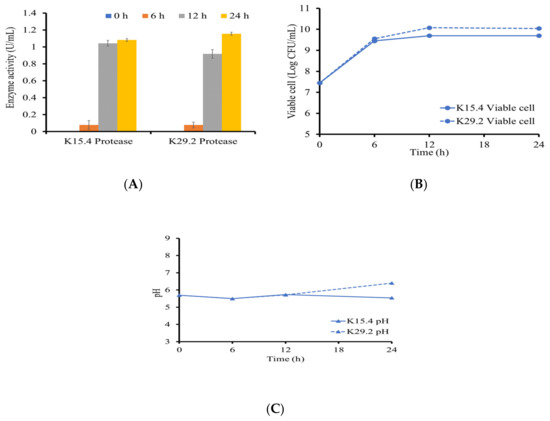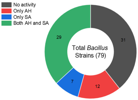 2.9. Protease-Producing Capability of Selected Bacillus Strains