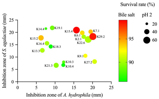 - Balcázar, J.L.; Vendrell, D.; de Blas, I.; Ruiz-Zarzuela, I.; Muzquiz, J.L.; Girones, O. Characterization of probiotic properties of lactic acid bacteria isolated from intestinal microbiota of fish. Aquaculture 2008, 278, 188–191. [Google Scholar] [CrossRef]
