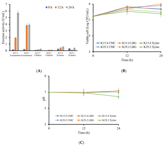 - Yopi, Y.; Djohan, A.C.; Rahmani, N.; Jannah, A.M. Isolation and characterization of mannanase, xylanase, and cellulase from marine bacteria Bacillus sp. Biofarmasi J. Nat. Prod. Biochem. 2017, 15, 15–20. [Google Scholar] [CrossRef]