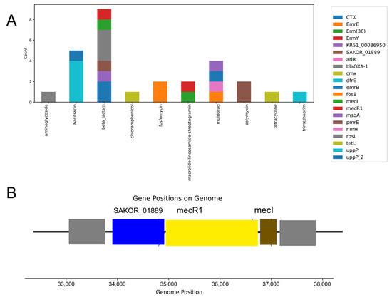 These ARGs are categorized based on their resistance mechanisms into antibiotic inactivation, cellular protection, efflux pumps, and unknown mechanisms. These resistance gene types confer resistance to major classes of antibiotics commonly employed in clinical and agricultural settings. While most viruses carry only one ARG, some compact viral gene structures harbor multiple ARG subtypes. A representative example is a virus carrying the beta-lactam ARGs mecI, mecR1, and SAKOR_01889 (Figure 5B). This compact gene structure suggests that these genes may work together to provide stronger resistance. As arthropod vectors, ticks can disseminate viruses and associated ARGs between animal species through their movement and multi-host blood-feeding lifestyle.