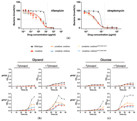 3.7. TiME Is Essential for Efficient Growth by M. smegmatis at Acidic pH