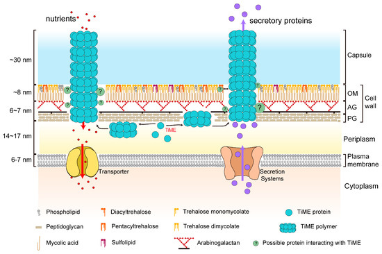 - Jackson, M.; Stevens, C.M.; Zhang, L.; Zgurskaya, H.I.; Niederweis, M. Transporters Involved in the Biogenesis and Functionalization of the Mycobacterial Cell Envelope. Chem. Rev. 2021, 121, 5124–5157. [Google Scholar] [CrossRef]