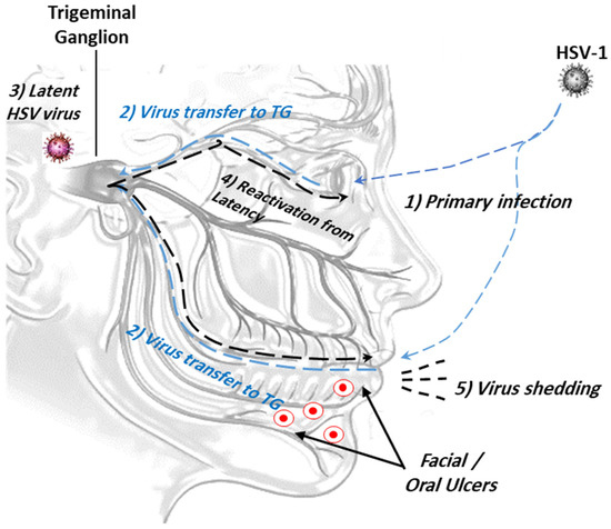 - Petti, S.; Lodi, G. The controversial natural history of oral herpes simplex virus type 1 infection. Oral Dis. 2019, 25, 1850–1865. [Google Scholar] [CrossRef] [PubMed]
