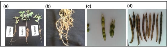 | Treatment | Root Length (cm) | Shoot Length (cm) | No. of Pods | No. of Nodules |