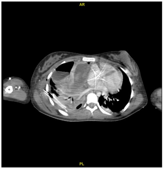 Our patient developed hemithorax, asthenia, adynamia, and dyspnea. A few days later, she developed a fever and respiratory stress syndrome. This corresponds with the report by Kaiser et al. [], who described the case of a 13-year-old patient admitted for sepsis of unknown origin. Like our patient, due to the worsening of her lung condition, she required intubation. Through CT, severe pneumonia and an emergency due to respiratory stress syndrome were identified in our patient. Therefore, antibiotic treatment was started.
