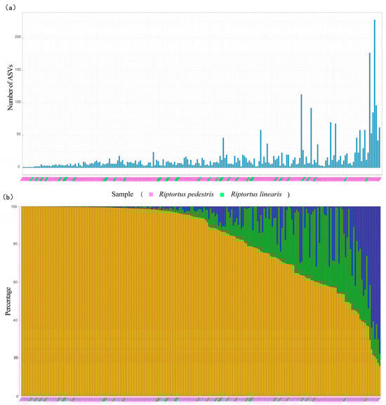 - Gook, D.H.; Jung, M.; Kim, S.; Lee, D.H. Species diversity of environmentally transmitted bacteria colonizing Riptortus pedestris (Hemiptera: Alydidae) and symbiotic effects of the most dominant bacteria. Sci. Rep. 2023, 13, 15166. [Google Scholar] [CrossRef] [PubMed]