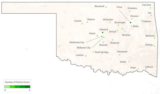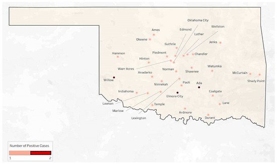 Toxoplasma gondii positive cases displayed by location in the state of Oklahoma.