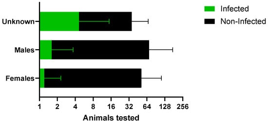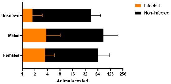 Infected and non-infected hosts that tested positive for T. gondii. according to sex.