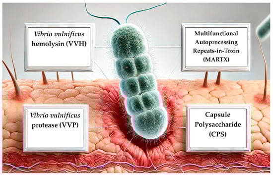V. vulnificus infection. Created in BioRender (https://BioRender.com/f89u105, URL created on 28 December 2024).