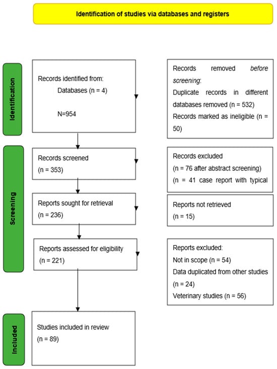 This review includes studies published over the last 30 years on V. vulnificus, with a comprehensive search conducted across Scopus, PubMed®, Web of Science®, and Cochrane®. We reviewed a variety of study types, including literature reviews, observational studies (case–control, cross-sectional), retrospective and prospective studies, clinical trials, and case reports, as well as in vivo and in vitro studies, all in the English language. Data were extracted based on the period of research, title, abstract, and study type. Ethical approval is not required for this review. The primary search terms used were as follows: V. vulnificus AND sepsis, V. vulnificus AND septic shock AND/OR infection, AND treatment AND/OR pathophysiology, and V. vulnificus AND microbiota (Figure 4).