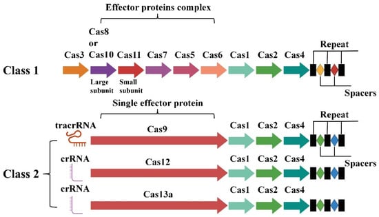 - Makarova, K.S.; Wolf, Y.I.; Iranzo, J.; Shmakov, S.A.; Alkhnbashi, O.S.; Brouns, S.J.J.; Charpentier, E.; Cheng, D.; Haft, D.H.; Horvath, P.; et al. Evolutionary Classification of CRISPR-Cas Systems: A Burst of Class 2 and Derived Variants. Nat. Rev. Microbiol. 2020, 18, 67–83. [Google Scholar] [CrossRef] [PubMed]