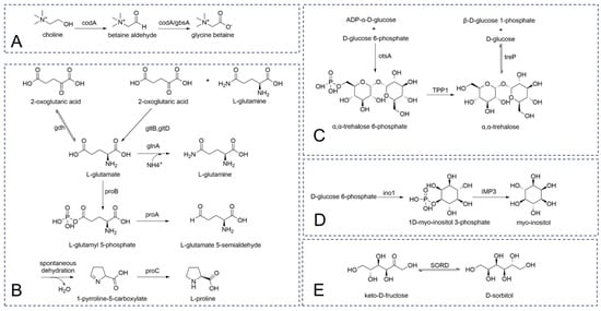 - Peter, H.; Weil, B.; Burkovski, A.; Krämer, R.; Morbach, S. Corynebacterium glutamicum Is Equipped with Four Secondary Carriers for Compatible Solutes: Identification, Sequencing, and Characterization of the Proline/Ectoine Uptake System, ProP, and the Ectoine/Proline/Glycine Betaine Carrier, EctP. J. Bacteriol. 1998, 180, 6005–6012. [Google Scholar] [CrossRef] [PubMed]