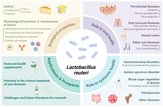 Liu Z, Cao Q, Wang W, Wang B, Yang Y, Xian CJ, Li T, Zhai Y. The Impact of Lactobacillus reuteri on Oral and Systemic Health: A Comprehensive Review of Recent Research. Microorganisms. 2025; 13(1):45. https://doi.org/10.3390/microorganisms13010045