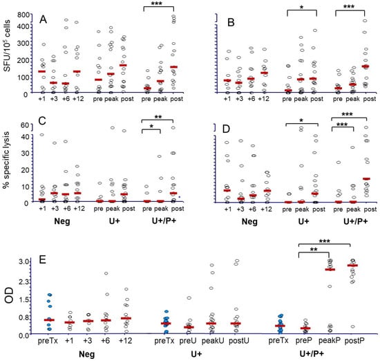 - Schaenman, J.M.; Korin, Y.; Sidwell, T.; Kandarian, F.; Harre, N.; Gjertson, D.; Lum, E.L.; Reddy, U.; Huang, E.; Pham, P.T.; et al. Increased Frequency of BK Virus-Specific Polyfunctional CD8+ T Cells Predict Successful Control of BK Viremia After Kidney Transplantation. Transplantation 2017, 101, 1479–1487. [Google Scholar] [CrossRef]