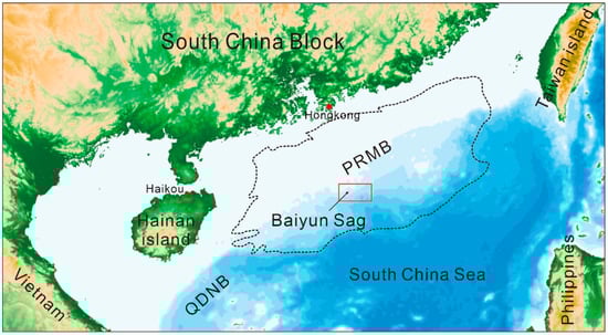 Study location in the PRMB (modified from Su, et al. [31] and Zhang, et al. [32]. PRMB—Pearl River Mouth Basin, QDNB—Qiongdongnan Basin.