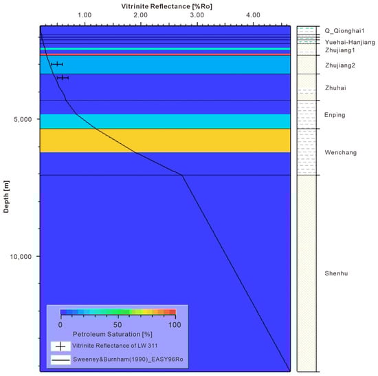 Ro calibration at well L311. The background is the overlay of petroleum saturation.