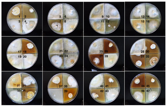 Spore-derived isolates 1–47. The isolates were transferred to quadrant plates containing BCYCAM30.