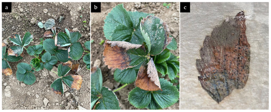 Strawberry (Fragaria × ananassa Duch.) is frequently affected by various pathogens that reduce both yield and quality, resulting in significant economic losses [1]. These pathogens can cause a range of severe diseases, including leaf spot (Mycospaerella fragariae), fruit and rhizome rot (Botrytis sp., Phytophthora spp. and Collototrichum sp.), and wilt (Fusarium spp. and Verticillium sp.), which not only reduce yield quantitively, but also have a negative impact on fruit quality, rendering fruits unsuitable for the market [1,2,3,4]. Fungal pathogens force growers to increase agricultural inputs, i.e., fungicides and labor, thereby raising production costs and complicating agricultural practices [5]. Additionally, emerging fungal pathogens like Pestalotia spp. have been increasingly recognized as severe threats in several strawberry producing countries including India, Israel, Egypt, the United States, and Brazil [6,7,8,9,10]. This highlights the widespread challenges growers face in managing these diseases effectively.