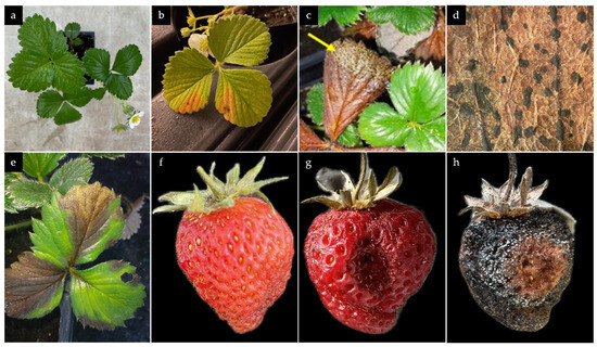 - Garrido, C.; González-Rodríguez, V.E.; Carbú, M.; Husaini, A.M.; Cantoral, J. Fungal Diseases of Strawberry and Their Diagnosis. In Strawberry: Growth, Development and Diseases; Husaini, A.M., Neri, D., Eds.; Cabi Publishing: Wallingford, UK, 2016; pp. 157–195. ISBN 978-1-78064-663-3. [Google Scholar] [CrossRef]