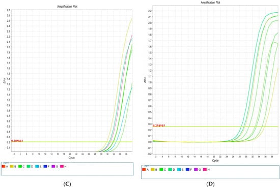 Amplification plots associated with E. coli genes: csgA (A), blaCTX-M1 (B), iutA (C), and kpsMII (D) in real-time PCR.