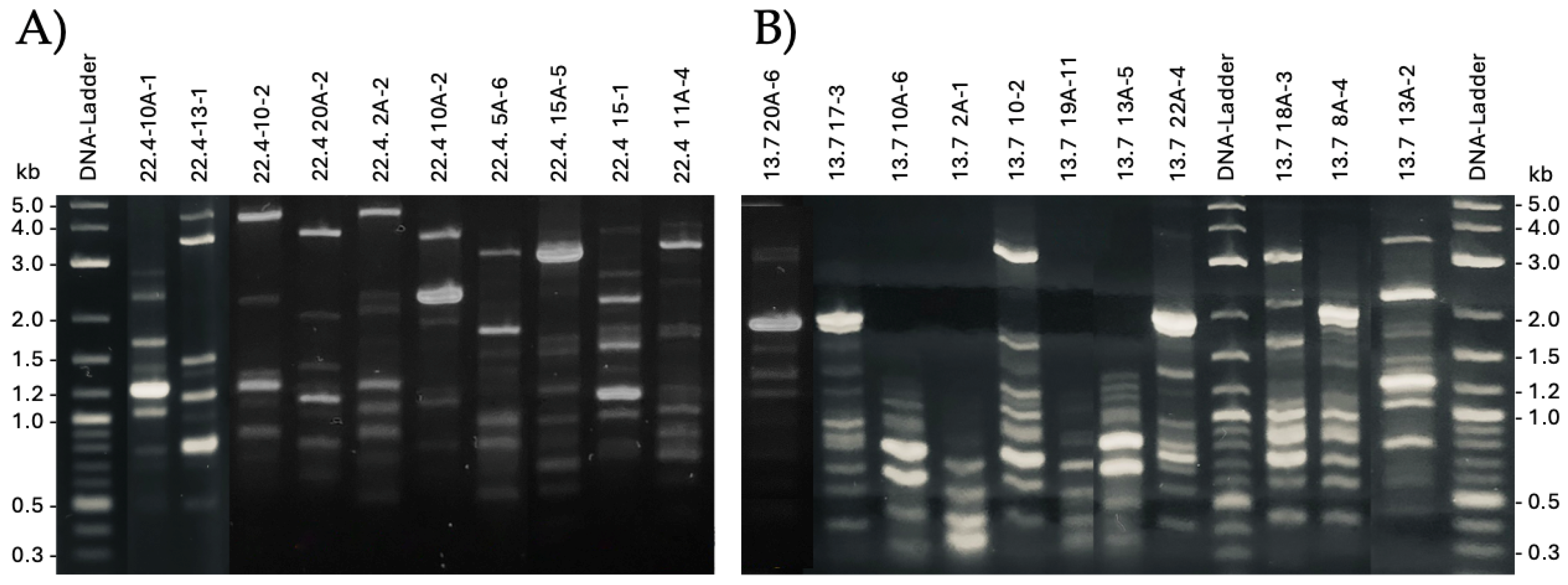 - Nielsen, K.L.; Godfrey, P.A.; Stegger, M.; Andersen, P.S.; Feldgarden, M.; Frimodt-Møller, N. Selection of Unique Escherichia coli Clones by Random Amplified Polymorphic DNA (RAPD): Evaluation by Whole Genome Sequencing. J. Microbiol. Methods 2014, 103, 101–103. [Google Scholar] [CrossRef]