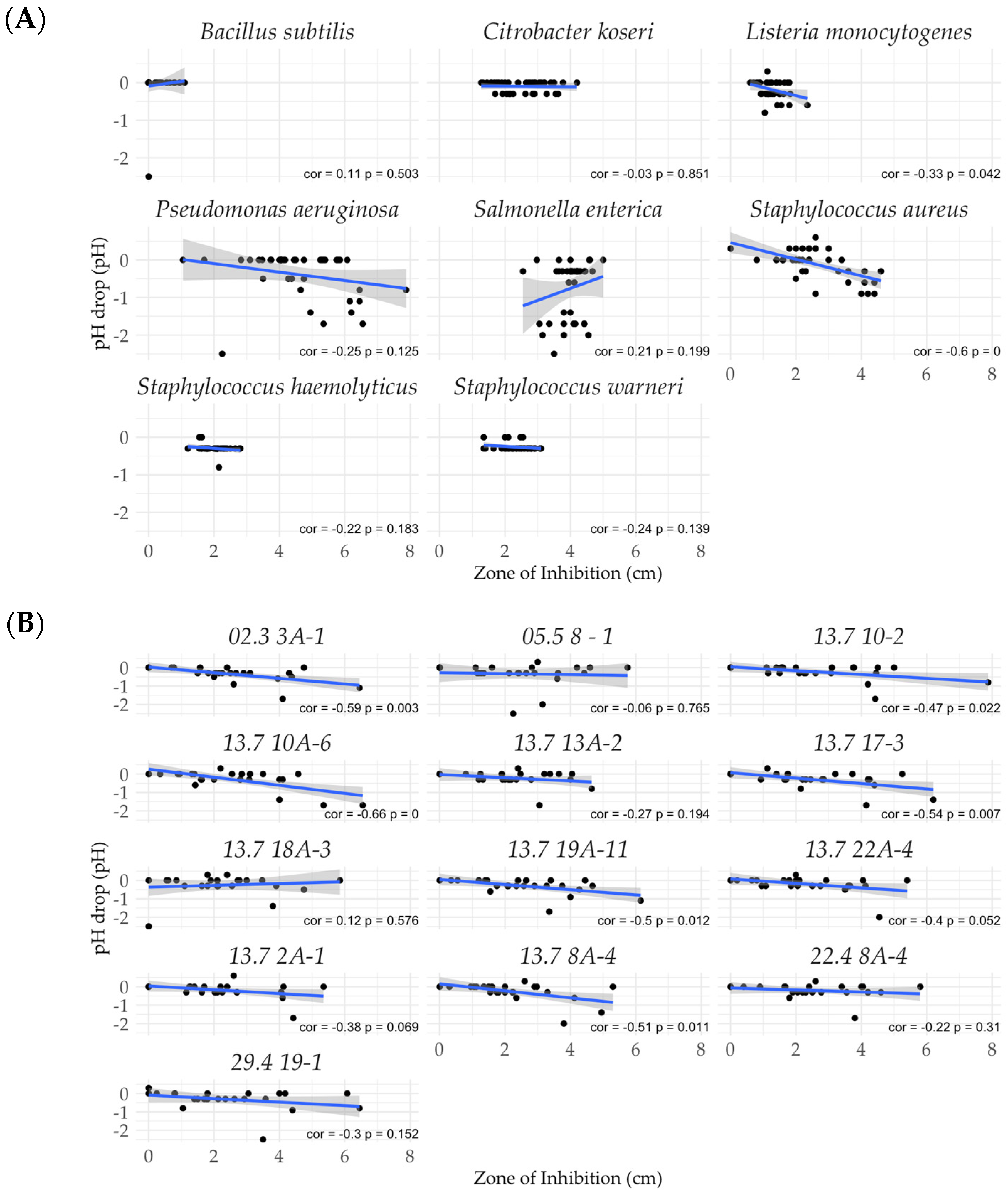 - Yang, E.; Fan, L.; Yan, J.; Jiang, Y.; Doucette, C.; Fillmore, S.; Walker, B. Influence of Culture Media, pH and Temperature on Growth and Bacteriocin Production of Bacteriocinogenic Lactic Acid Bacteria. AMB Express 2018, 8, 10. [Google Scholar] [CrossRef]