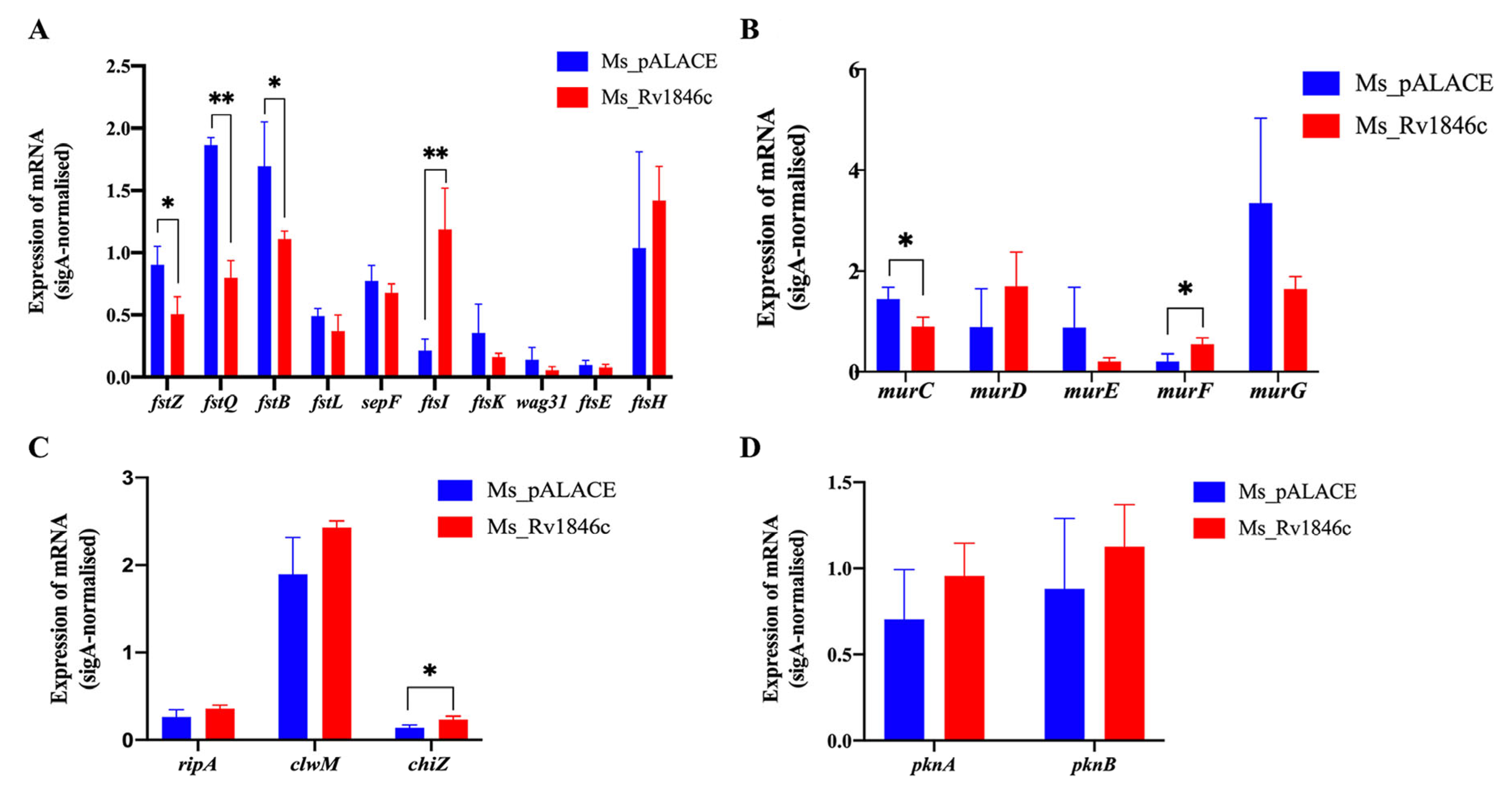 18]. Alterations in cell wall components or membrane integrity can disrupt normal mycobacterial division, affecting host environment adaptation and antibiotic resistance [