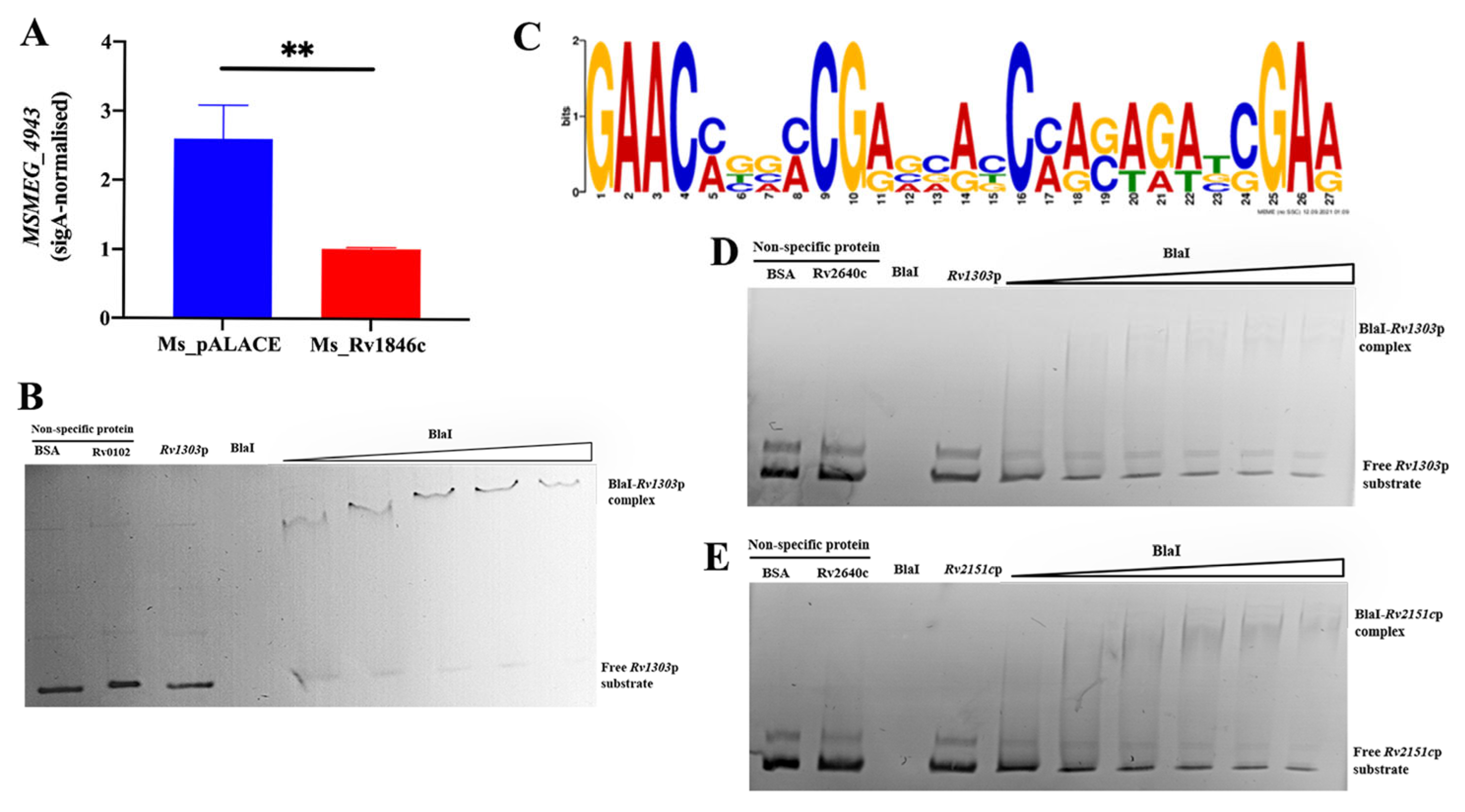 Figure 5A), and EMSA confirmed BlaI’s regulatory effect on
