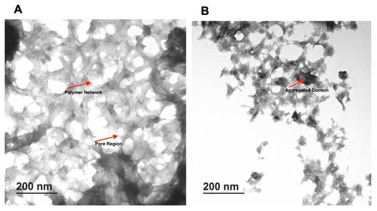 TEM images of formulated hydrogels. (A) CMC 3%, (B) Chitosan 1.5%.