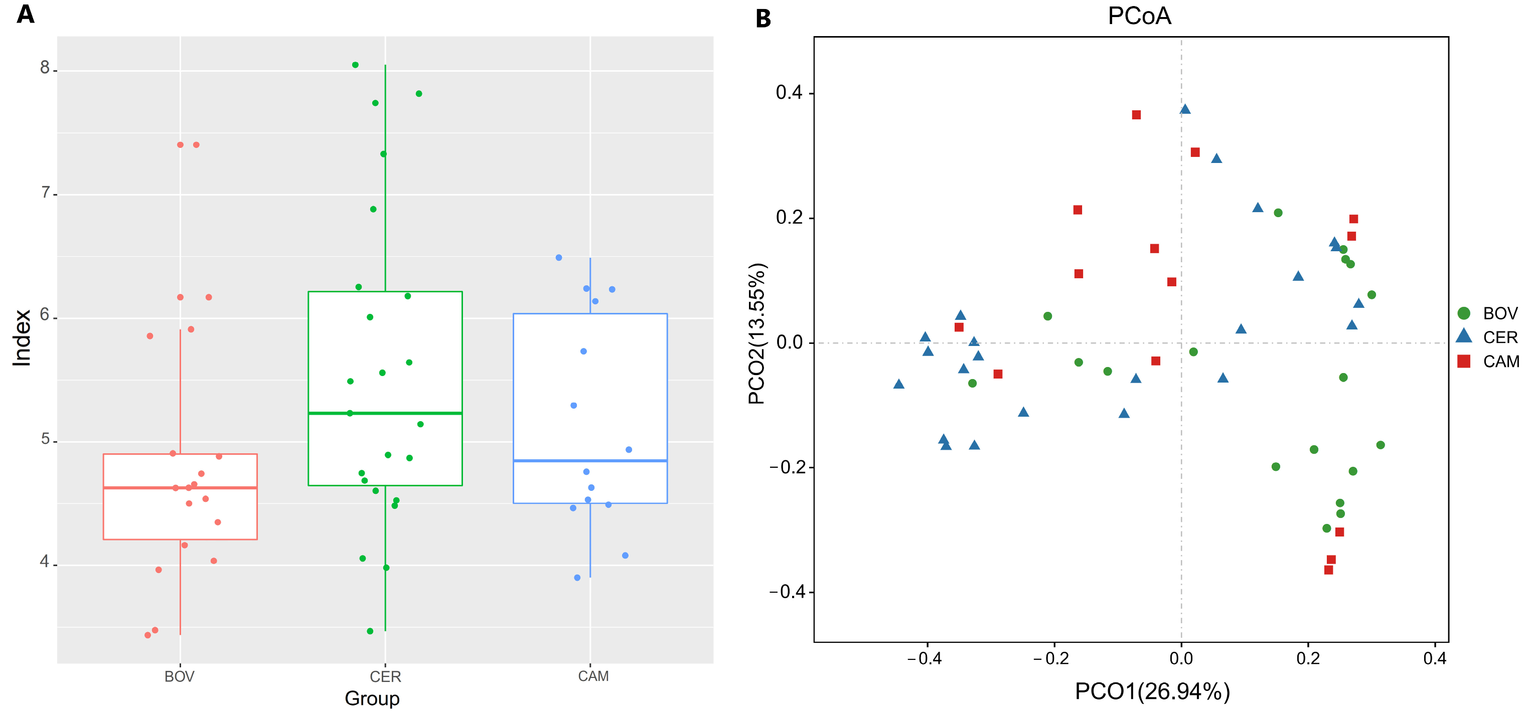 APA StyleSun, G., Xia, T., Wei, Q., Wang, X., Dong, Y., Yang, X., Zhang, L., Sha, W., & Zhang, H. (2025). Host Phylogeny Shapes Gut Microbiota and Predicted Functions in Captive Artiodactyls. Microorganisms, 13(10), 2250. https://doi.org/10.3390/microorganisms13102250