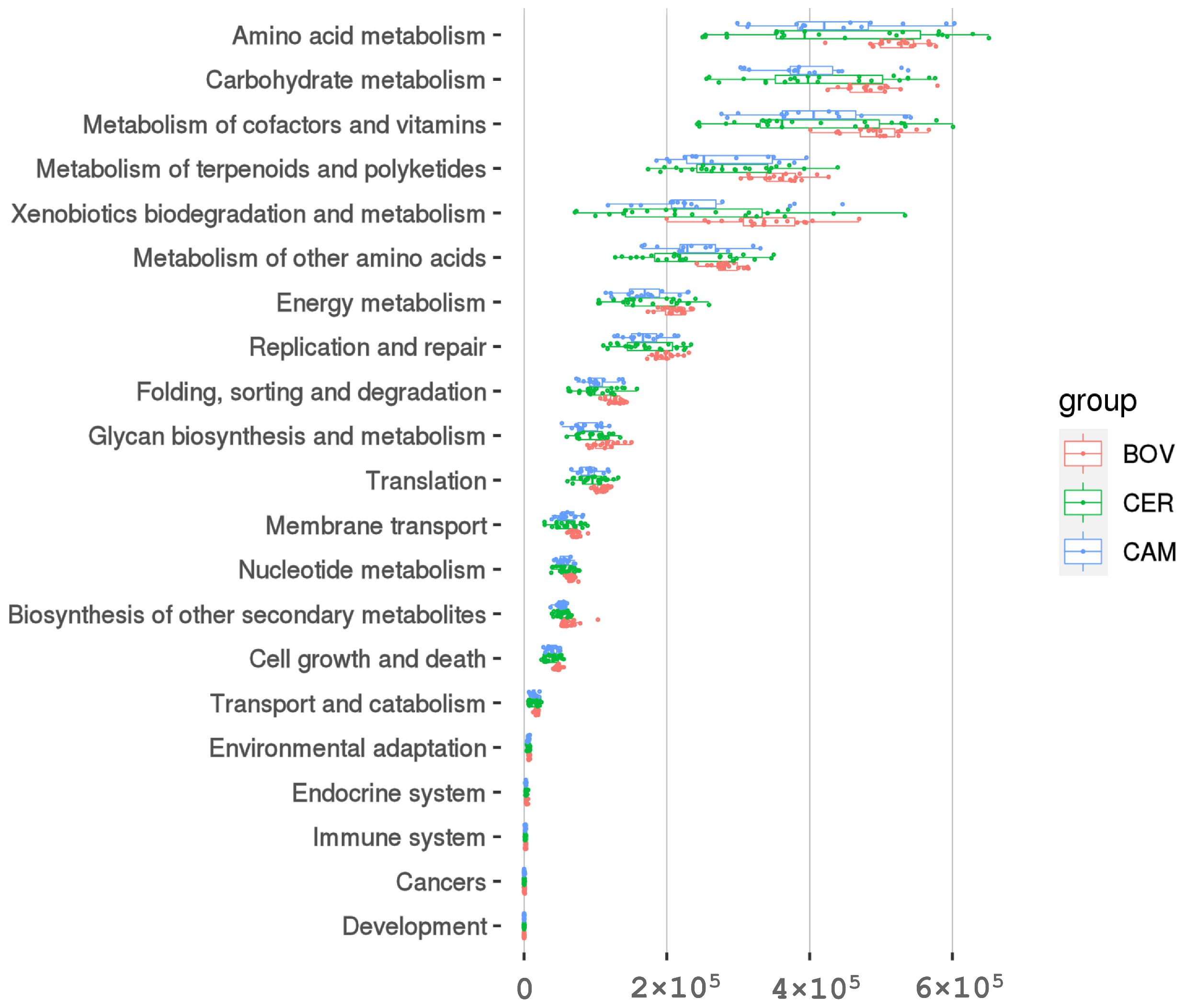 3.6. PICRUSt2-Inferred Functions Varied with Host Family